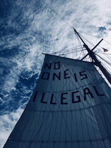 1h site-specific open-air new-circus performance on a touring sailing boat various harbours in Germany / Denmark (Baltic Sea)